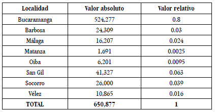 La Tabla 1 muestra los índices de población obtenidos de cada una de las localidades identificadas en las tierras altas santandereanas.