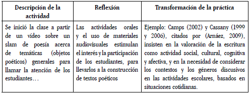 La segunda categoría, la transformación de la práctica docente, vista desde el diseño, la aplicación de enfoques y metodologías que los docentes practicantes tuvieron en cuenta dentro de sus quehaceres pedagógicos y didácticos. En este punto es necesario señalar que varios resultados lograron mostrar que la educación virtual es igual de importante que la presencial en cuanto a la construcción de competencias. Al respecto, Torres (2018) dice que los textos multimodales permiten diversas estrategias de comprensión para la sistematización del aprendizaje, la organización de los espacios y la recuperación de la información que se enseña, la creación de repositorios, la coproducción textual entre docentes y estudiantes, y el trabajo colaborativo. Jaramillo (2015), por su parte, menciona la creación de espacios como páginas y edublogs en correspondencia con el desarrollo de competencias de los estudiantes, y la segmentación de pensamiento a partir de las herramientas cognitivas que sintetizan el conocimiento y que, además, pueden ser de gran utilidad para incentivar la productividad y la publicación y, de esta manera, valorar el trabajo de los estudiantes.
