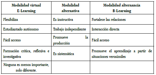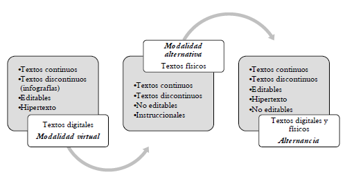Modalidad virtual y alternativa. La implementación de las TIC y su articulación con el material pedagógico-didáctico para la población restante que no estaba en condiciones de acceso de manera virtual.