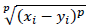(p = 3), ente los errores simulados y reales para la serie temporal de errores por sesiones ((a menor distancia, mejor).