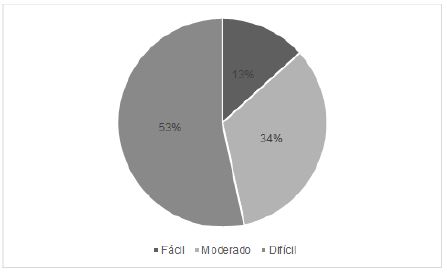 Otro de los elementos que se exploraron es el nivel de dificultad de aprendizaje del inglés que perciben los participantes, con base en su experiencia desde el colegio hasta la universidad. De los participantes que incluyen el inglés dentro de las lenguas que saben, la mayoría clasifica como difícil su aprendizaje, seguido por el porcentaje de estudiantes que lo clasifican como moderado, y, por último, como fácil. Los grados percibidos y los porcentajes representativos se muestran en la siguiente figura.