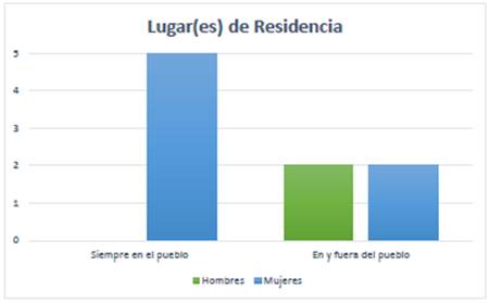 De ellos, cinco participantes han residido toda su vida en el pueblo, mientras que cuatro han pasado algún tiempo fuera en algún(os) momento(s) de su vida, tanto cerca (Beas de Segura y Cortijos Nuevos) como lejos del pueblo (Logroño, Barcelona y País Vasco):