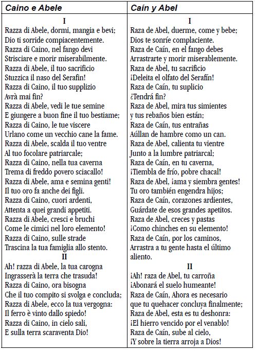 Caino e Abele vs Caín y Abel: propuesta de traducción