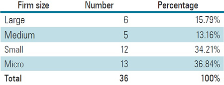 Regarding the size of investing firms, 71.05% are micro and small-sized firms, as shown in table number 5. This is a key factor, as small and micro enterprises in this area generally do not have continuity plans or insurance covering damage due to disasters, or characterized as a seismic event, indicating a possible that they cannot return to work.