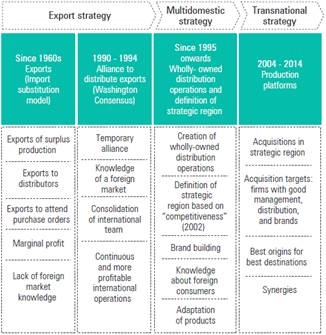 To unveil and discuss the corporate-level international strategy choices that transformed Grupo Nutresa from Multilatina to Global Latina, data about Grupo Nutresa was contrasted with international strategy literature. This literature explains the four different archetypes or choices of corporate-level international strategies available to firms. These are: export strategy, multidomestic strategy, global strategy, and transnational strategy (Volberda et al., 2011; Collis, 2014).