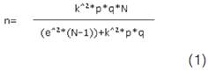 La muestra objeto de estudio fue de 35 empresas del sector de tercerización de procesos de negocio que accedieron a participar, de una población de 47 empresas adscritas a la Asociación Colombiana de Contact Centers (ACDECC). La siguiente ecuación (1) presenta el mecanismo de determinación del tamaño de la muestra: