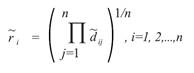 Equation (3) Step 4: According to Buckley, the geometric mean of fuzzy comparison values of each Criterion is calculated as shown in Eq. 4. Here,