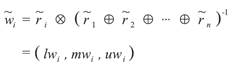 Equation (4)Step 5: The fuzzy weights of each criterion can be found with Eq. 5, by incorporating next 3 sub steps.