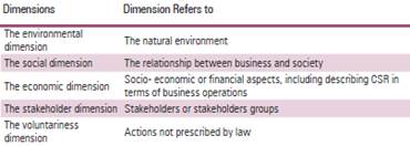 These dimensions are the result of CSR evolution over several years. They also show that they are related to elements as diverse as the environment, laws and businesses own operations. Therefore, it can be said that CSR is a multidimensional concept, at least until this stage of its evolution (Sarmiento, 2008; Husted & Allen, 2006; Carrol, 1999).