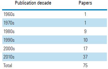 With reference to Table 2, the paper selection for this review includes some research before 1980s, when IDs research was beginning, an important number for the 1980s period and a larger amount of papers for 1990s and later, in order to properly establish trends of IDs research evolution. Specifically, the sample includes 34 different periods between 1969 and 2018.