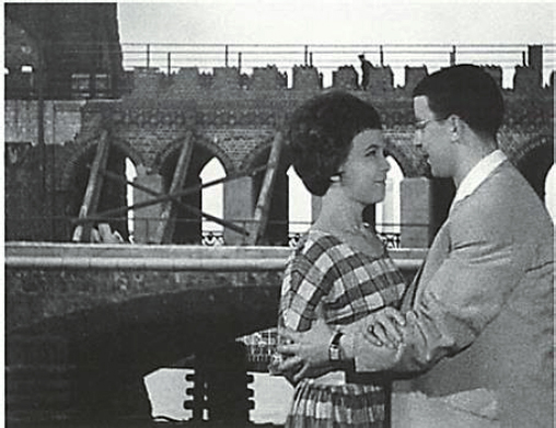 Outro caso interessante, em relação à ilusão de referência, é a última foto do livro, mostrando Sérgio Günther abraçado a uma mulher (Figura 3). Para quem conhece o local onde a foto foi tirada, algo na perspectiva incomoda. O lugar onde eles posaram é inimaginável (só se for pairando sobre a água...), e a fotografia da ponte ao fundo, entre Berlim Ocidental e Oriental, é razoavelmente conhecida.