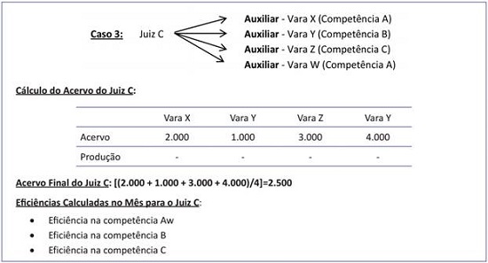 Juiz auxiliando: neste último cenário, como o juiz não possui nenhum acervo sob sua titularidade ou respondência temporária, seu acervo final é calculado a partir da média dos acervos parciais obtidos em cada unidade em que estiver atuando. Segue-se o exemplo da Figura 3: