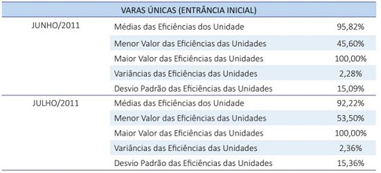 Desta forma, caso o juiz tenha atuado em mais de uma unidade no mês de referência, o número de funcionários, colaboradores e de computadores que comporão o cálculo da sua eficiência, como insumos, serão dados pela média de cada variável.