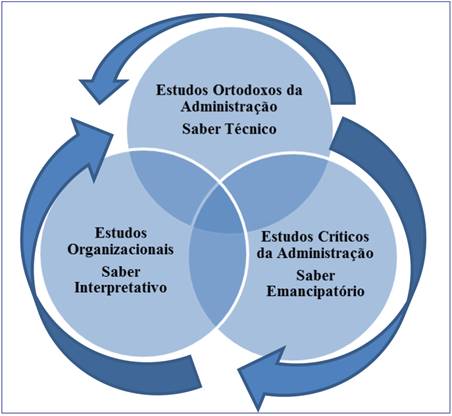 A administração, na condição de campo científico, expressa-se como um saber interdisciplinar que ainda necessita de reconhecimento e legitimação da comunidade científica. Por ser um campo de conhecimento em fase de consolidação, há um esforço, por parte da sua comunidade acadêmica, para conceder seu status de ciência. Em decorrência disso, conferem-se na literatura da área três matrizes de conhecimento, cujos conteúdos contribuem para essa finalidade: a) EOA; b) Estudos Organizacionais (EO); e c) Estudos Críticos em Administração (ECA).