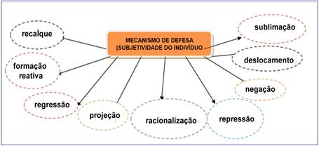 Pensando na resiliência como mecanismo de defesa, esse conceito, então, seria mais um a compor a subjetividade do indivíduo. Em face disso, Freud (2006) ressaltou a existência dos mecanismos expostos na Figura 1.
