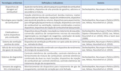 Essas tecnologias para a redução das emissões de gases tóxicos dos automóveis tiveram um papel importante para a melhora da qualidade do ar. A Quadro 2 apresenta as tecnologias ambientais para a redução de emissões tóxicas automotivas, classificadas como inovação ambiental tecnológica incremental.