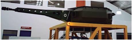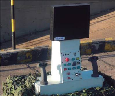 Uma infraestrutura com laboratórios, equipamentos adaptados e profissionais especializados estava disponível, assim como uma estrutura organizacional favorável à troca de conhecimentos entre os centros de pesquisa do EB e a empresa contratada. A Figura 10 e a Figura 11 mostram, de maneira consecutiva, o primeiro protótipo do REMAX (REMAX 1) e o seu painel de controle. Com a utilização das capacidades acumuladas no projeto NFBR, o REMAX 1 foi desenvolvido em dois anos e apresentado ao público sob uma estativa na Latin American Aero-Defense (LAAD) 2009.