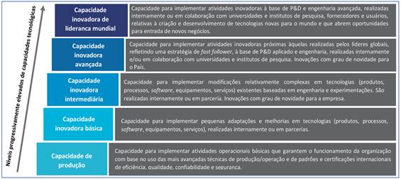 Para Miranda e Figueiredo (2010), capacidade tecnológica pode ser considerada como os recursos necessários para gerar e gerenciar atividades inovadoras em produtos, processos, sistemas organizacionais e equipamentos. Especialmente no contexto de países emergentes, são vistas como um conjunto de recursos de natureza cognitiva, intangível, mas capazes de definir seu desempenho distintivo no mercado; tendo-as por base, as empresas são capazes de realizar atividades de produção (de bens e serviços) e de inovação (FIGUEIREDO, 2015).