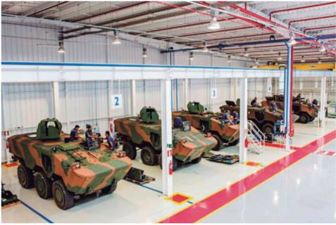 Os resultados obtidos no projeto da NFBR levaram a IVECO, por livre iniciativa, a implantar uma fábrica, em Sete Lagoas (MG), dedicada aos blindados Guarani, com capacidade instalada para produzir 140 viaturas por ano (BASTOS JÚNIOR, HIGUCHI e BACCHI, 2015), conforme demonstrado na Figura 8.