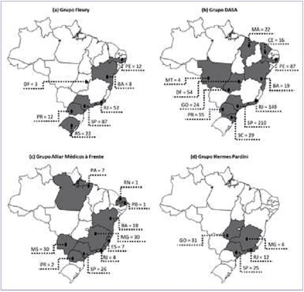 Em 2018, o grupo prestava serviços para mais de 20 instituições hospitalares renomadas nos estados de São Paulo, Rio Grande do Sul, Rio de Janeiro e Paraná, além do Distrito Federal, por meio das marcas a+ Medicina Diagnóstica, Fleury Medicina e Saúde e Weinmann.
