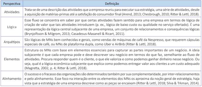 Em contrapartida, há diferenças conceituais sobre MNs, existindo certa ambiguidade entre as definições. Ritter e Lettl (2018) identificaram 5 perspectivas diferentes sobre o termo MN, as quais serão explicitadas no Quadro 1.