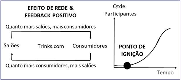 A Trinks.com enfrentou o dilema do “o ovo ou a galinha” atraindo primeiro os salões. Ao acrescentar funcionalidades de gestão à plataforma, tornou o produto autossuficiente para os salões, independente da participação dos consumidores. Entretanto, uma parte dos estabelecimentos não utiliza a funcionalidade de agendamento e são poucas as avaliações de salões e profissionais feitas pelos consumidores, indícios de que os efeitos de rede ainda são fracos, de que o ponto de ignição ainda não foi atingido, bem como o feedback positivo ainda não ocorreu.
