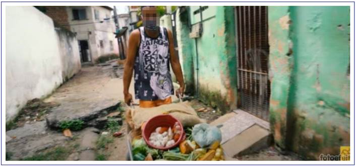 Such statement is represented in Figure 7, which music video presents the narrative of a character who works hard as vegetable seller in pursuit of a better life; his daily life is shown through the paths he travels through the alleys of the favela and the people he meets on the way.