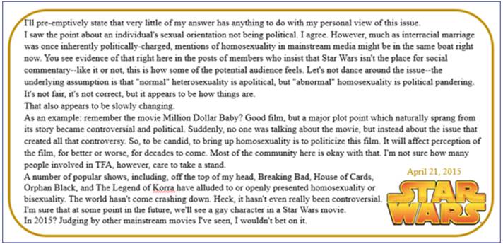 TheForce.net. (2015b, April 20). Homosexuality and TFAhttps://boards.theforce.net/threads/homosexuality-and-tfa.50029463