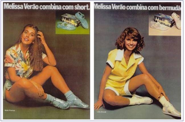 The moment for the brand to bet on the launch of new models was 1982. Melissa Rock which allowed size adjustments using an adjustable cord around the ankle, was a new success among Brazilian women. Following international fashion trends such as the salons in Paris and New York, the brand started to invest in marketing strategies as a way of adding value to its sandals and accessories. As the first footwear brand to link an advertisement to Brazilian television, from 1983 on Melissa could already be seen on the feet of Brazilian actresses with collections signed by international designers such as Jean Paul Gaultier and Thierry Mugler. With the launch of new collections every fashion season, the first Melissas also began to appear in windows abroad.