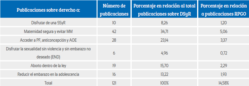 En los 22 años transcurridos del presente Comité Editorial de la RPGO se han publicado 121 trabajos en relación a los DSyR de las mujeres peruanas y se aprecia un avance importante no solo en el número de artículos sino en la incorporación que han hecho los diferentes autores de identificar en el tema abordado por ellos el derecho que tienen las mujeres a disfrutar de una salud sexual y reproductiva, sin los riesgos que implica la falta de cuidados de la salud. Se habla cada vez con más énfasis de los derechos de las mujeres.