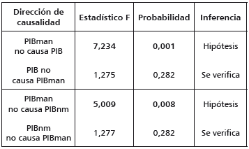 Lo que se encontró en el análisis estadístico es que las series están cointegradas y que la dirección de causalidad va de la producción manufacturera a la producción total. En el caso de las series de producción no manufacturera y manufacturera, se observa que esta última causa estadísticamente a la primera. De esta forma, se cuenta con evidencia para afirmar que, en términos relativos, la hipótesis de investigación es válida. Por lo tanto, el problema del bajo crecimiento podría superarse en otros factores (progreso tecnológico, inversión privada, respeto al Estado de derecho, combate a la corrupción, mejora del marco macroeconómico, entre otros), vía el diseño de una política industrial activa para dinamizar las industrias manufactureras.