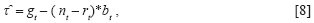 This way, we get the budget constraint, which is dependent on the interest rate, growth rate, and past deficits.
