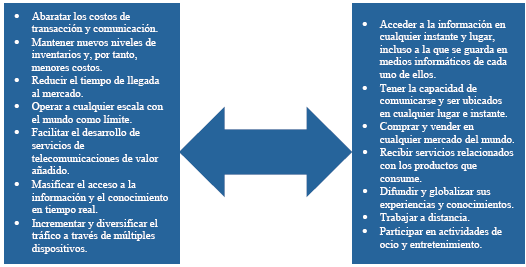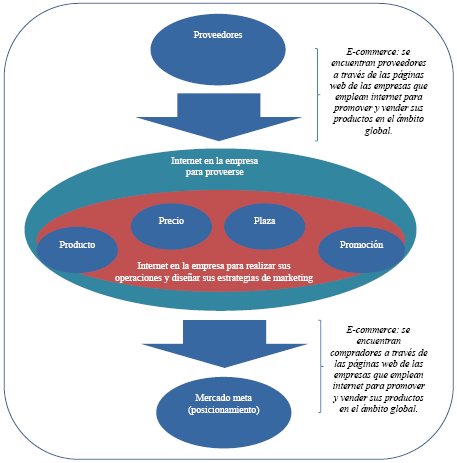 La administración adecuada de estas variables permite posicionar el producto en el mercado meta. En la actualidad, si se quiere desarrollar una estrategia comercial, se debe considerar un pensamiento de ecommerce. Internet se ha convertido en un insumo intangible de toda estrategia para llegar al cliente; es, a su vez, un medio que puede se utilizado tanto por la gran empresa como por la pequeña. Como se observa en la figura 2, tanto la empresa como el cliente reciben una diversidad de beneficios.
