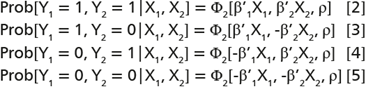 Donde Φ2 hace referencia a la función de distribución normal bivariada estandarizada.