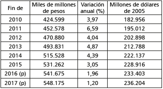 8. Banco de la República de Colombia (2017, 6 de septiembre). PIB total y por habitante. Recuperado de http://www.banrep.gov.co: http://www.banrep.gov.co/es/pib.