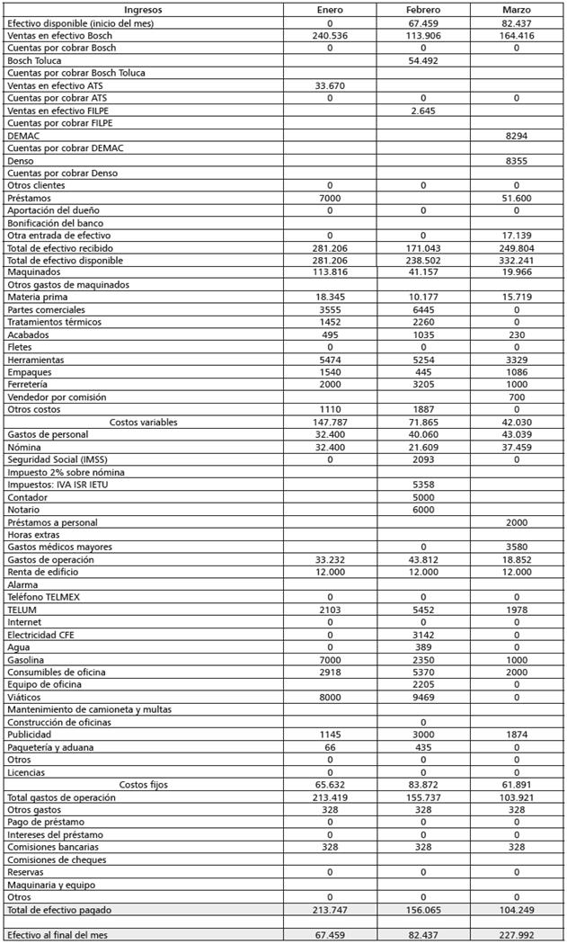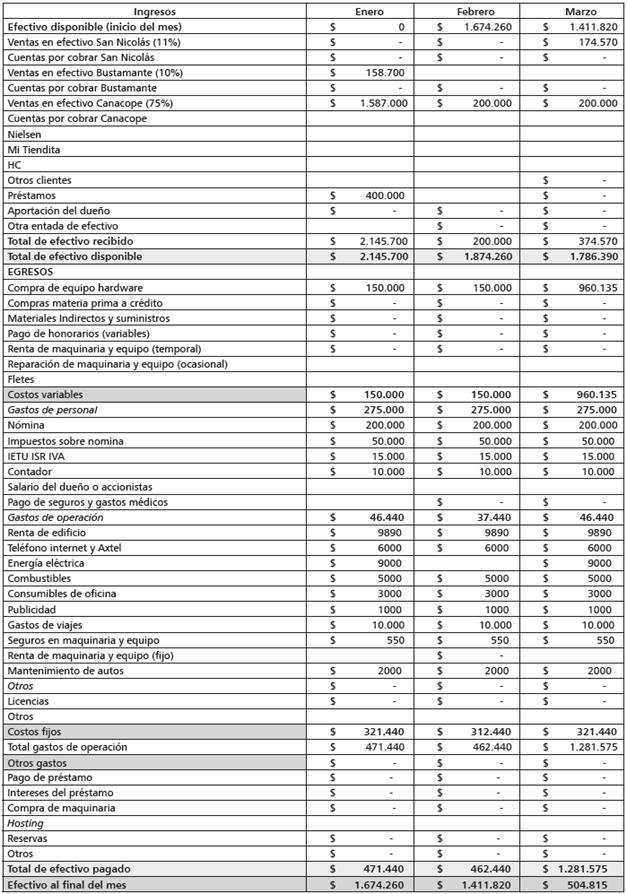 El flujo de la empresa quedó como se muestra en la tabla 4 (solo se presentan tres meses, por motivos de espacio).