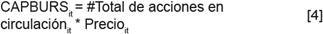 Se escogió como variable de control, pues mide el valor de una empresa según el mercado y hace referencia al tamaño. En línea con O'shee et al. (2008) y la BVC (2014), se calculó multiplicando el número total de acciones en circulación de cada empresa (i) por el precio de la acción al finalizar el periodo trimestral (t):