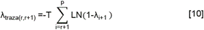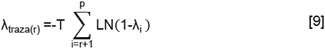 Donde λi son los valores estimados de las raíces características de Π, y T es el número de observaciones. Otra alternativa para detectar el número de cointegraciones es el estadístico del máximo eigenvalor, donde la hipótesis nula es de (r) relaciones de cointegración, con una hipótesis alternativa de r+1 relaciones de cointegración. Este estadístico está dado por: