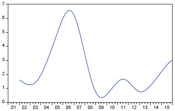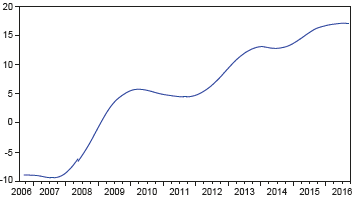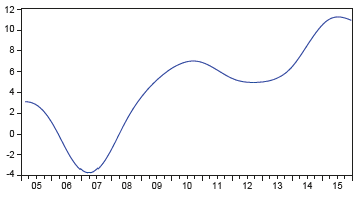En este trabajo también se identificaron los choques asimétricos de los precios del crudo en la economía vallecaucana. Para resolver este problema, autores como Mork (1989) y Hamilton (2003) usan una trasformación de la variable para identificar los efectos de los grandes cambios positivos en el precio del petróleo, lo cual es especificado de la siguiente forma: