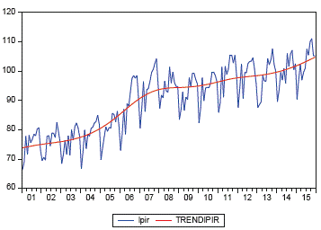 Como se puede observar en la gráfica 4, en octubre de 2006 la tendencia del IPIR tuvo el mayor crecimiento: un 6,6% con respecto al mismo mes del año anterior. En diciembre de 2008 su tendencia alcanzó el menor crecimiento: 0,3%; en octubre de 2011 se presentó otro pico de crecimiento importante: 1,7%, y en septiembre de 2016 la tasa anual de crecimiento real fue de 1,8%.
