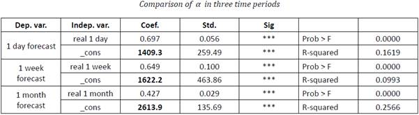 where Yi,t corresponds to the dependent variable forecast of participant i in period t. The independent variable Xi,t corresponds to the real value of the S&P MILA Pacific Alliance Select index in period t. Since the experiment used real index information, once the experiment was finished, one month had to pass to obtain the actual index values and thus complete the information in the data panel. The value of a in equation 2 is assumed to be the average individual effect of the participants of the experiment, which is interpreted as a state of mind that can displace the forecasts above or below the value of the index. The certainty to define α optimism or pessimism will be given as long as the value of β equals one. ui,t corresponds to the random component.