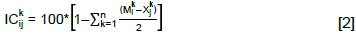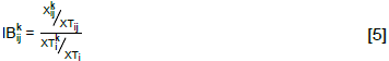 Donde es la exportación del bien k por el país ¡ al país j; XTij es la exportación total del país ¡ al país j;