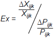 La ecuación para la elasticidad de oferta de exportaciones (Ex) con respecto al precio doméstico es esta: