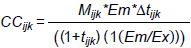 Asumiendo que en una situación de libre comercio el precio doméstico del bien i en el mercado de importación j será igual al precio de exportación del país k más los costos de seguro y transporte (CIF), este precio, por tanto, incrementará en un monto equivalente al arancel ad-valorem. Entonces, se tiene: