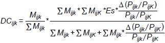 Con base en la ecuación previa, es posible expresar el cambio porcentual en las cuotas relativas de proveedores alternativos en términos de la elasticidad de sustitución. De esta forma, se puede obtener la siguiente ecuación para estimar la DC: