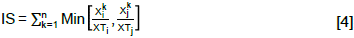 El nivel de competencia que se presenta entre dos países puede calcularse utilizando el IS, pues permite medir la homogeneidad de las exportaciones de dos economías y así determinar si las exportaciones del país socio suponen un riesgo para la producción nacional (figura 4). Los resultados posibles se encuentran entre 0 y 1. Si las economías tienen estructuras de exportación completamente heterogéneas, se obtendrá un resultado de IS = 0 y, por lo tanto, la competencia será inexistente. En contraposición, cuando las economías tienen estructuras de exportación totalmente homogéneas, el resultado obtenido será de IS = 1 y, por ende, existirá una fuerte competencia. El análisis histórico del IS permite determinar la convergencia o divergencia de las estructuras de exportación. La fórmula matemática es esta: