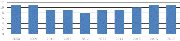 La diversificación de exportaciones es diferente para Colombia y Japón. Para el caso del primer país, se encuentra que las exportaciones están concentradas, aunque existe una tendencia decreciente, pasando de un valor de 46 en el 2008 a un mínimo de 29 en el 2017. Para el caso del segundo, el punto más alto fue 4 en el 2017, pues la reducción de importaciones de otras mercancías generó una mayor concentración en vehículos y sus partes. Dada la diversidad de exportaciones, Japón tiene una mayor oportunidad de beneficio del acuerdo, y Colombia podría, entonces, beneficiarse de este para ampliar su canasta de exportaciones.