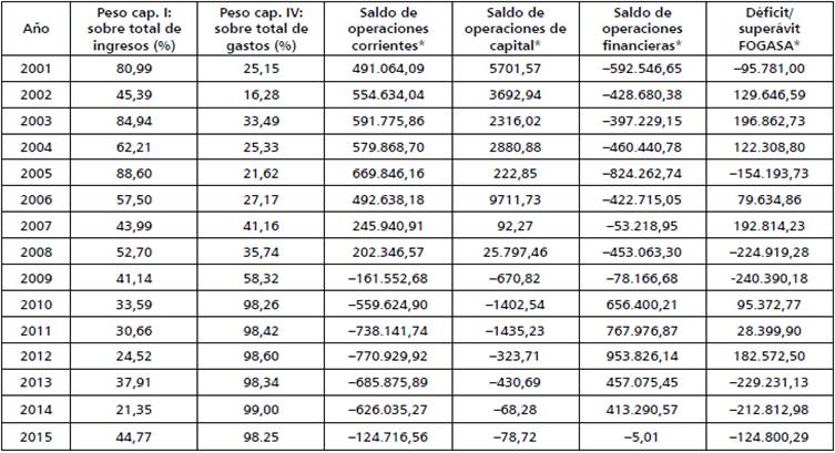 Del análisis de los ingresos, gastos y saldos de la liquidación de los presupuestos del FOGASA (tabla 1), se puede notar que hasta el 2009 existía un ahorro bruto representado por el saldo positivo de operaciones corrientes. Por una parte, el dinamismo de la economía propiciaba la creación de empleo y, por lo tanto, el aumento de los ingresos por cuotas, a pesar de mantener unos TC bajos. Hasta el 2006, el capítulo I de la liquidación de los presupuestos de ingresos representó el 80% de los ingresos corrientes y estuvo creciendo a una tasa media anual próxima al 5%.