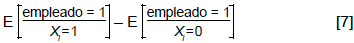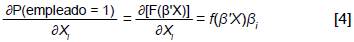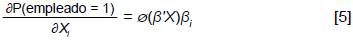 Ya que se asume Xi es una variable binaria (valores entre 0 y 1) y se necesita observar el cambio de P(empleadoi = 1|X¡) cuando Xi toma valores entre 0 y 1, el efecto marginal de modelo sería: