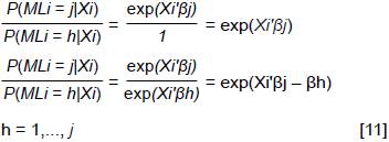 De este modo, lo que se evaluará es la probabilidad de que el individuo i tome una alternativa j para j = 0, 1, 2 ...J: